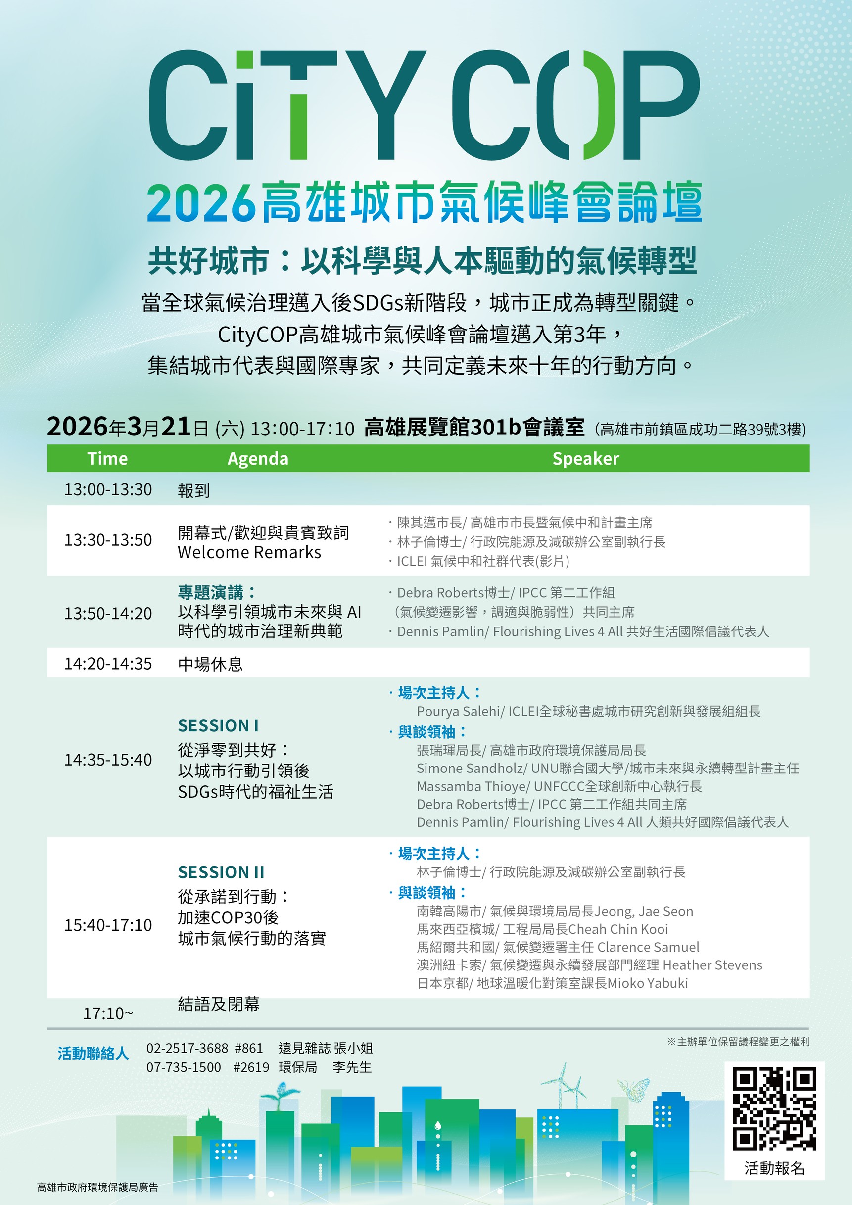 高雄市政府與地方政府永續發展理事會(ICLEI)訂於 115年3月21日共同舉辦「2026 CityCOP 高雄城市氣候峰會論壇」