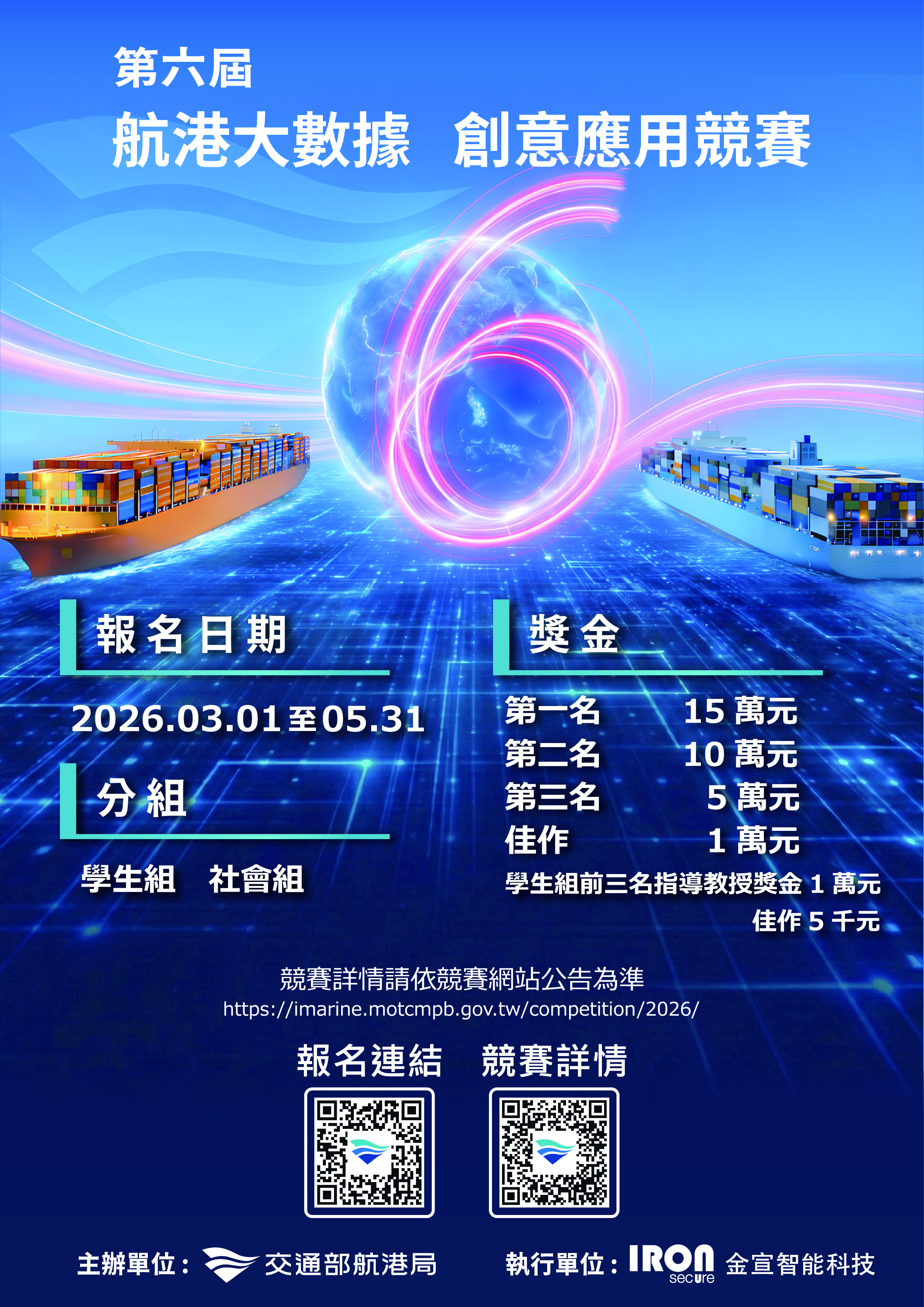 為充分發揮資料庫價值,本局透過舉辦「第6屆航港大數據創意應用競賽」,鼓勵各界將資料庫之數據資料,進行更深入的加值應用,