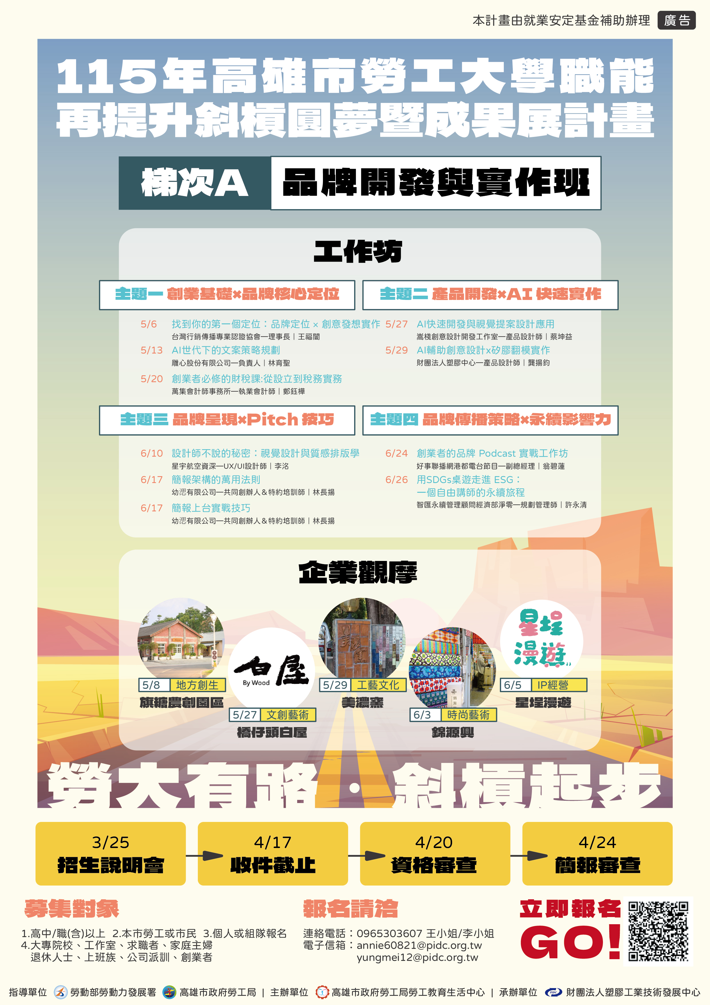 (一)115/3/25(三) 招生說明會【地點:樹德科技大學推廣教育中心高雄分部;時間:15:00–16:00】。
