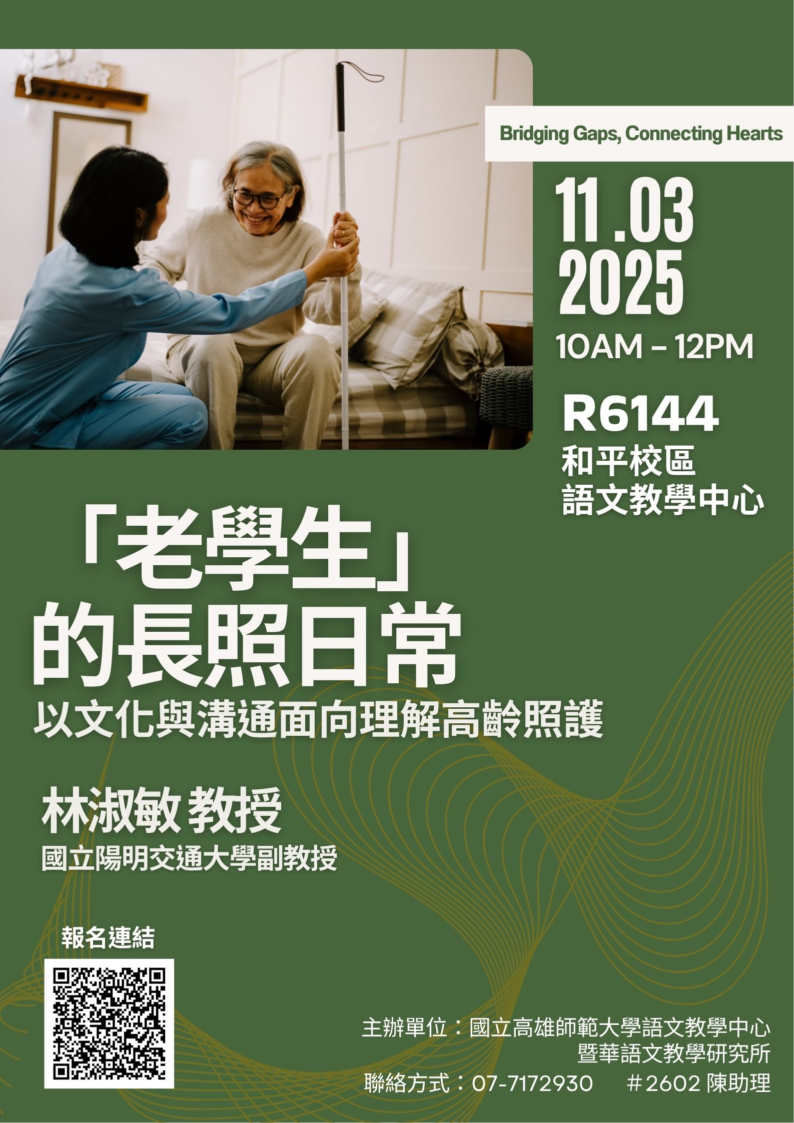 114秋季系列專題講座 -「 老學生 」 的長照日常:以文化與溝通面向理解高齡照護