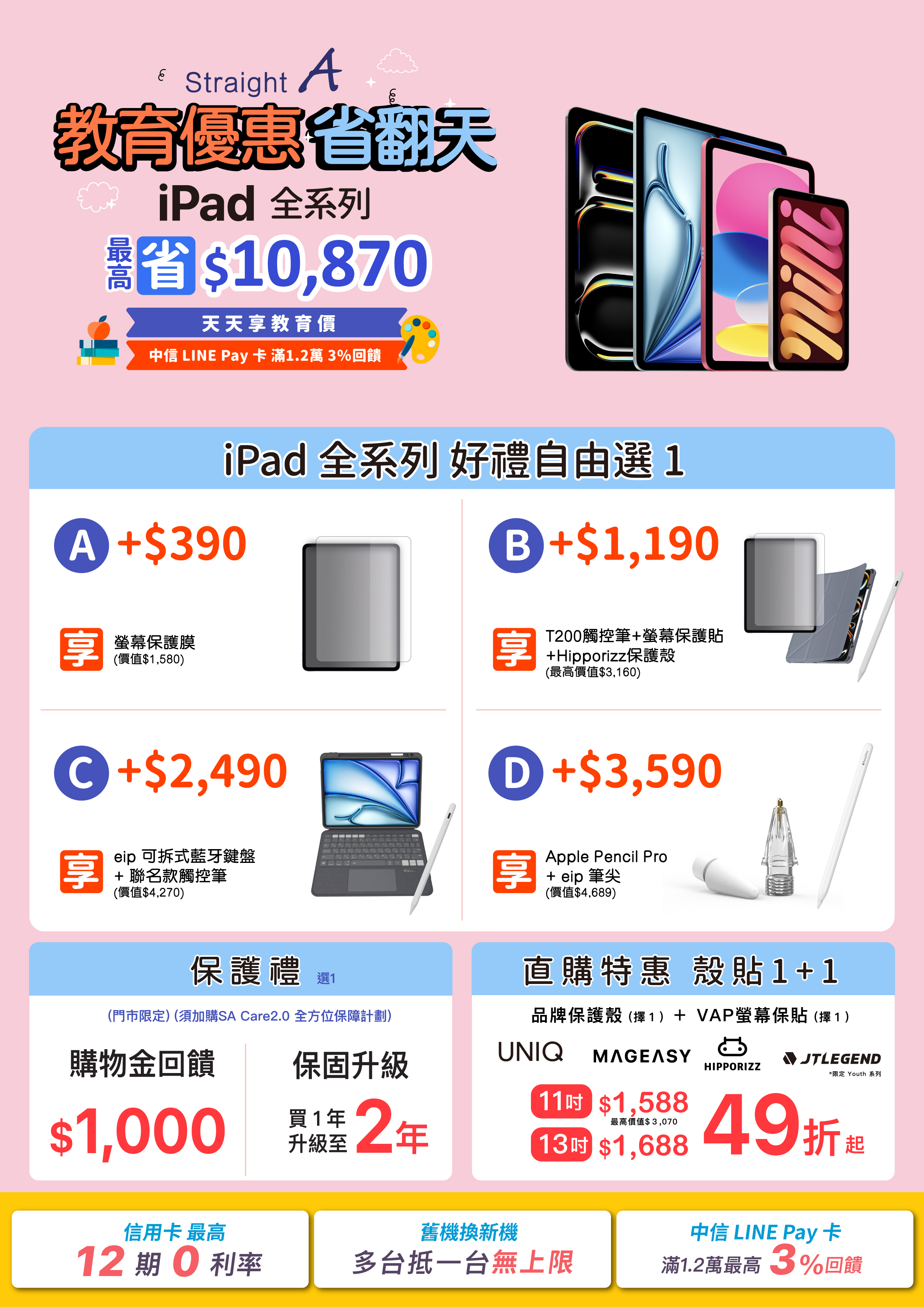 C. +$2,490|eip 可拆式藍牙鍵盤+聯名觸控筆(價值 $4,270)