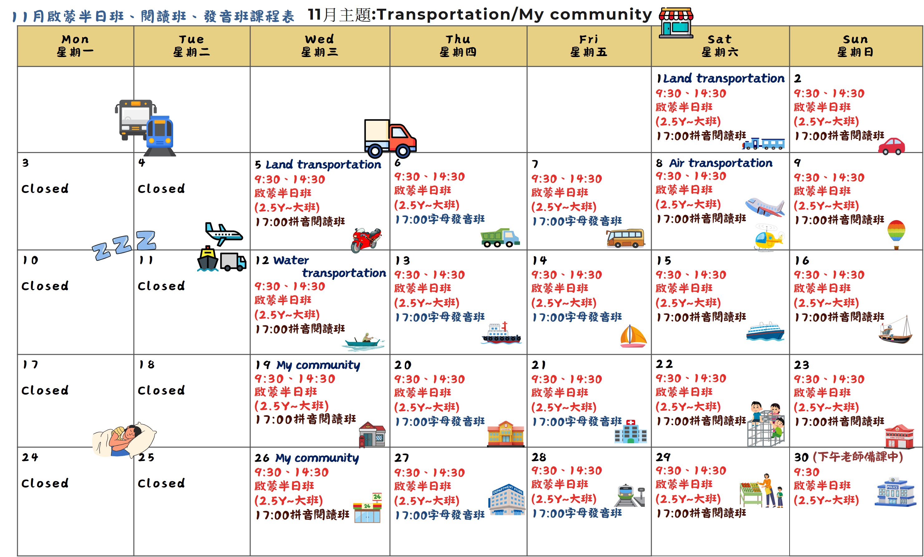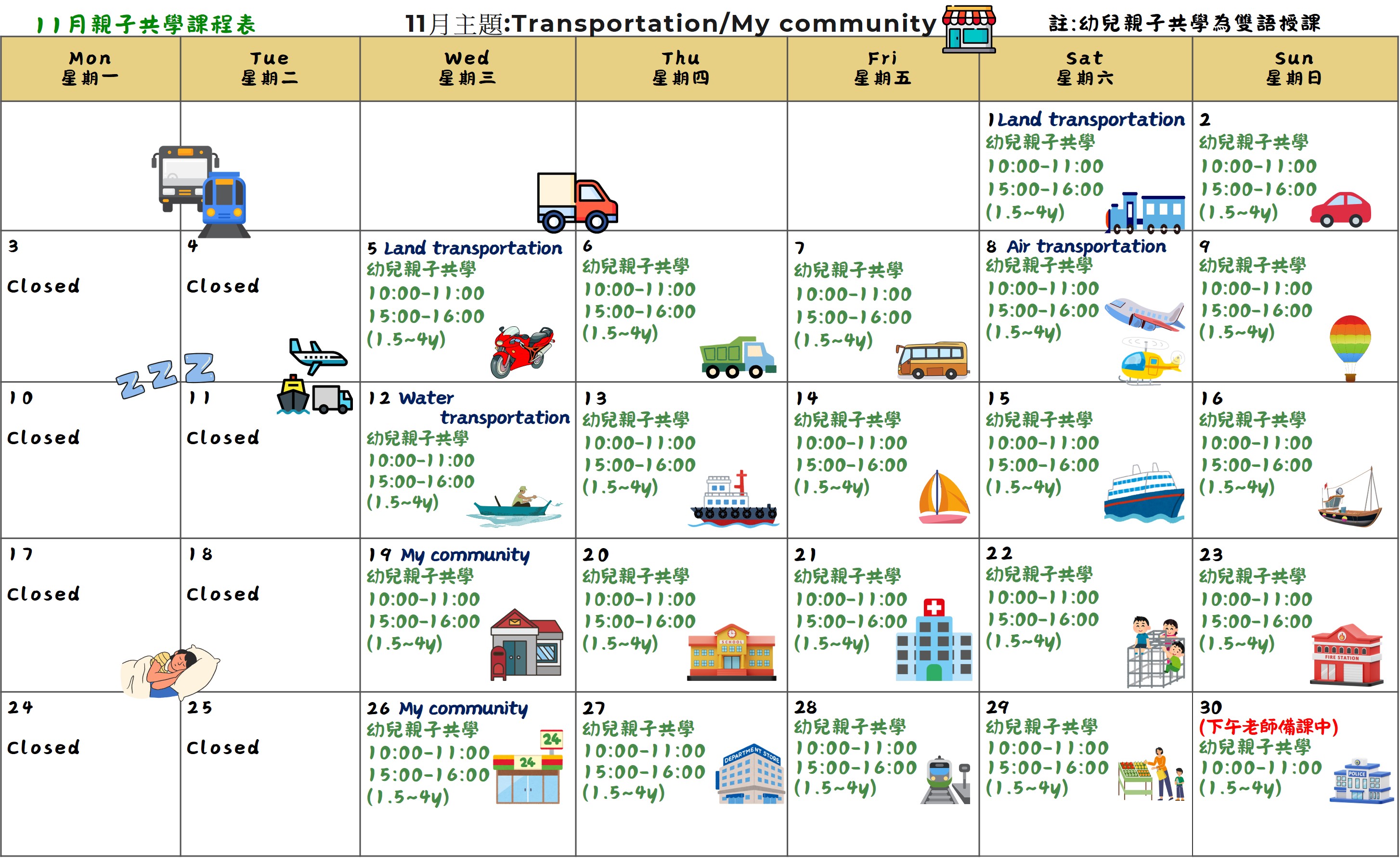 11月我們要一起探索「交通工具」和「我的社區」
