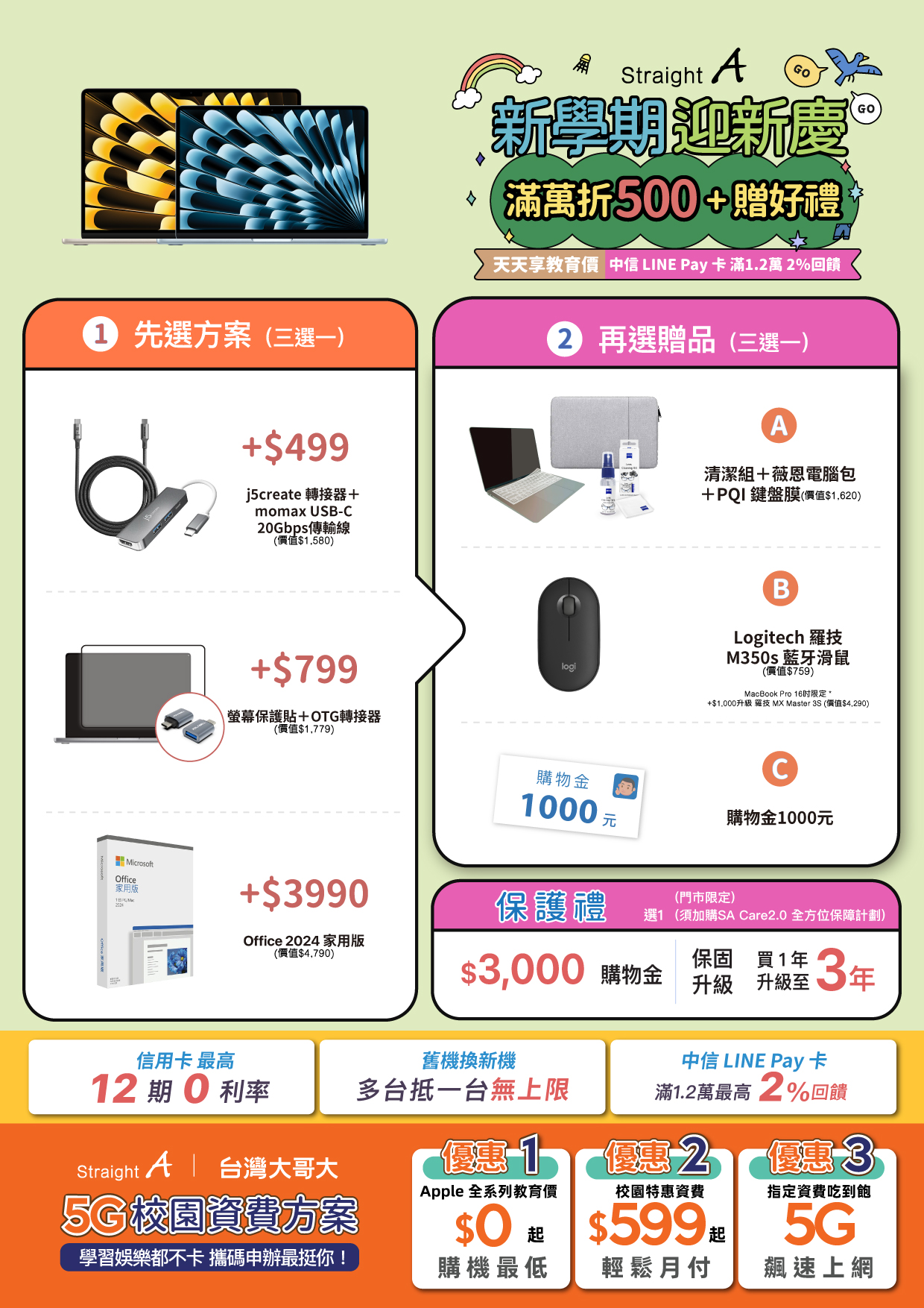 好禮 A+B 再享 主機教育價後滿萬現折 $500