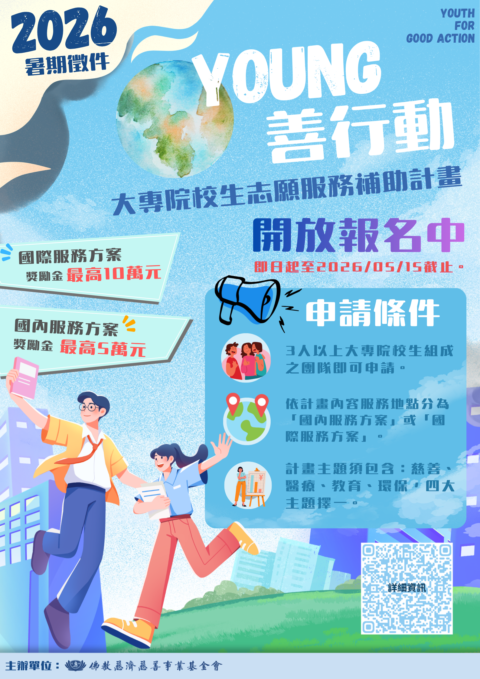 財團法人中華民國佛教慈濟慈善事業基金會辦理「Young善行動-大專院校生志願服務申請補助計畫」