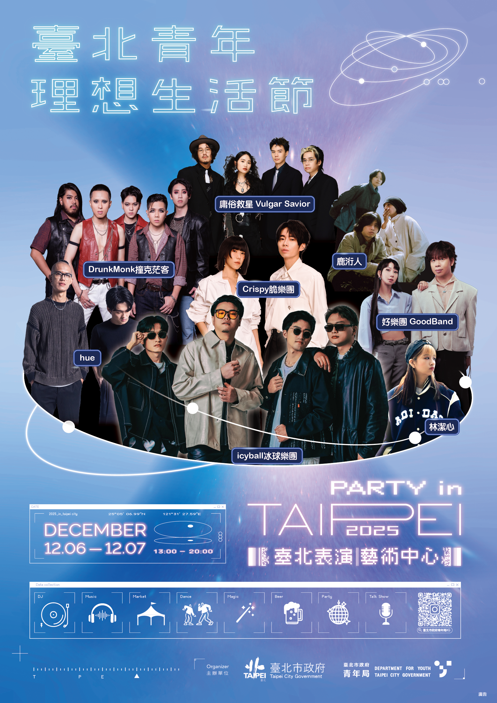並邀請知名人氣樂團輪番開唱,打造一場屬於青年世代的年度生活盛典,呈現臺北青年在國際交流、公共參與、職涯探索、