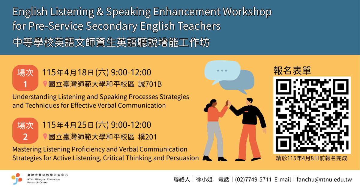 #臺師大雙語教學研究中心 #臺師大雙語中心 #臺師大 #雙語教育 #雙語教學 #NTNU #Bilingual #臺師大雙語中心研習快訊