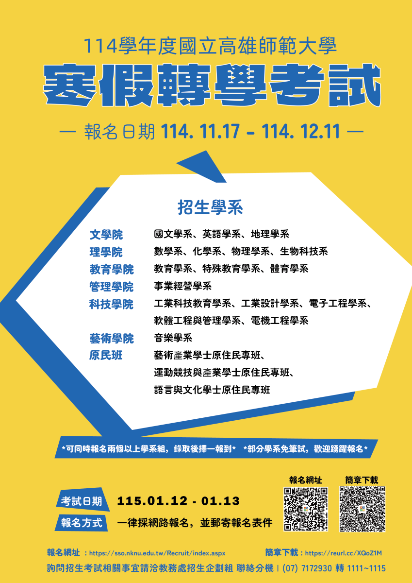 一、報名時間:114年11月17日(上午9時起)至114年12月11日止