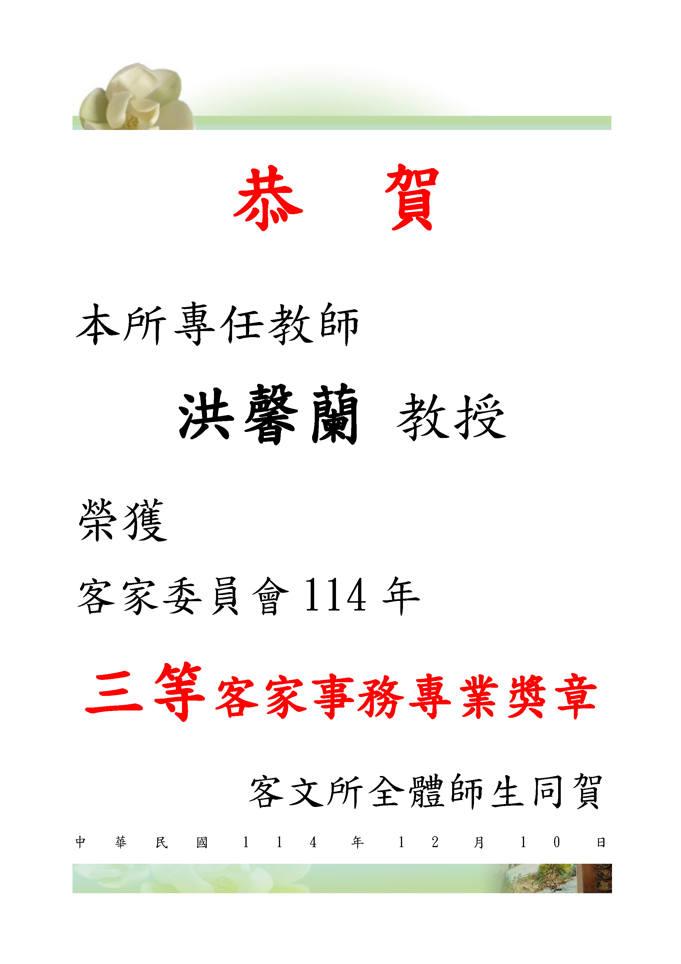 賀榜(洪馨蘭榮獲114三等客家事務專業獎章).jpg (630979 Kb)