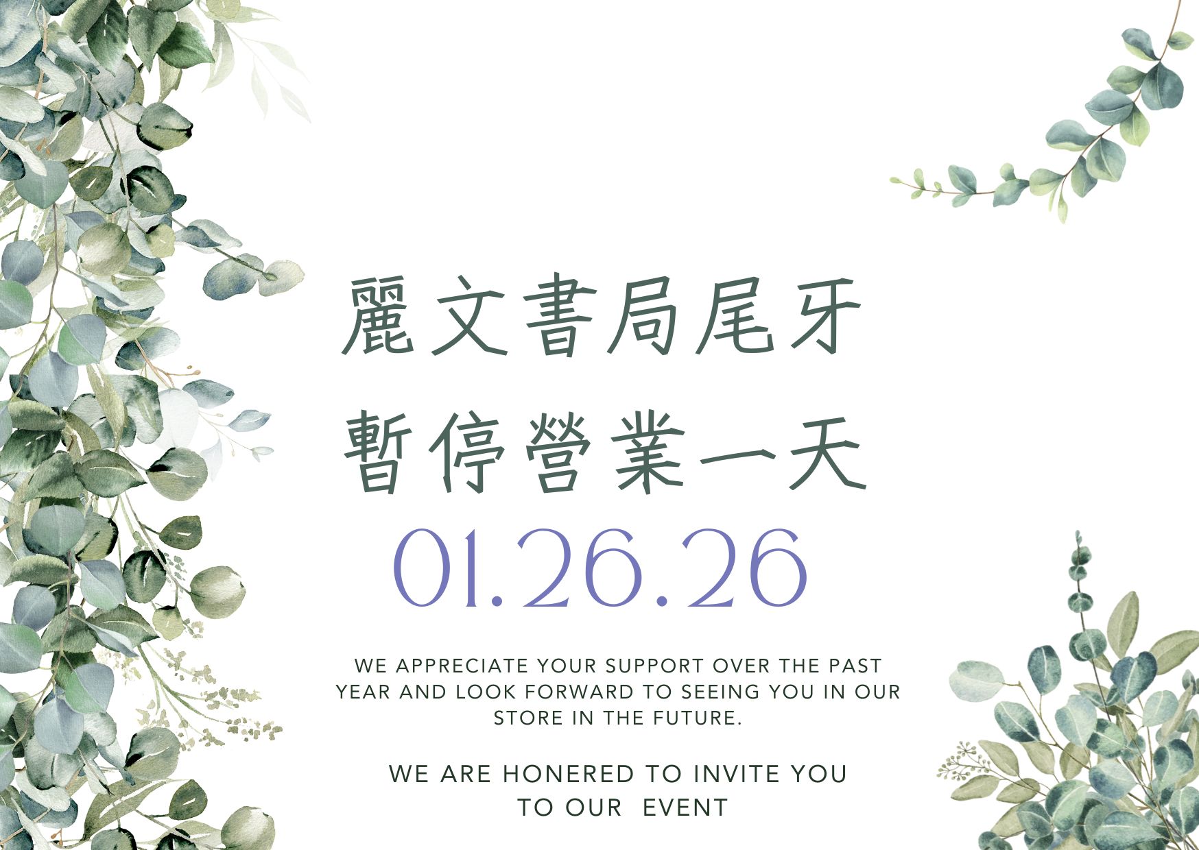 【保管組公告】📚🌿麗文書局1/26(周一)尾牙 | 暫停營業一天
