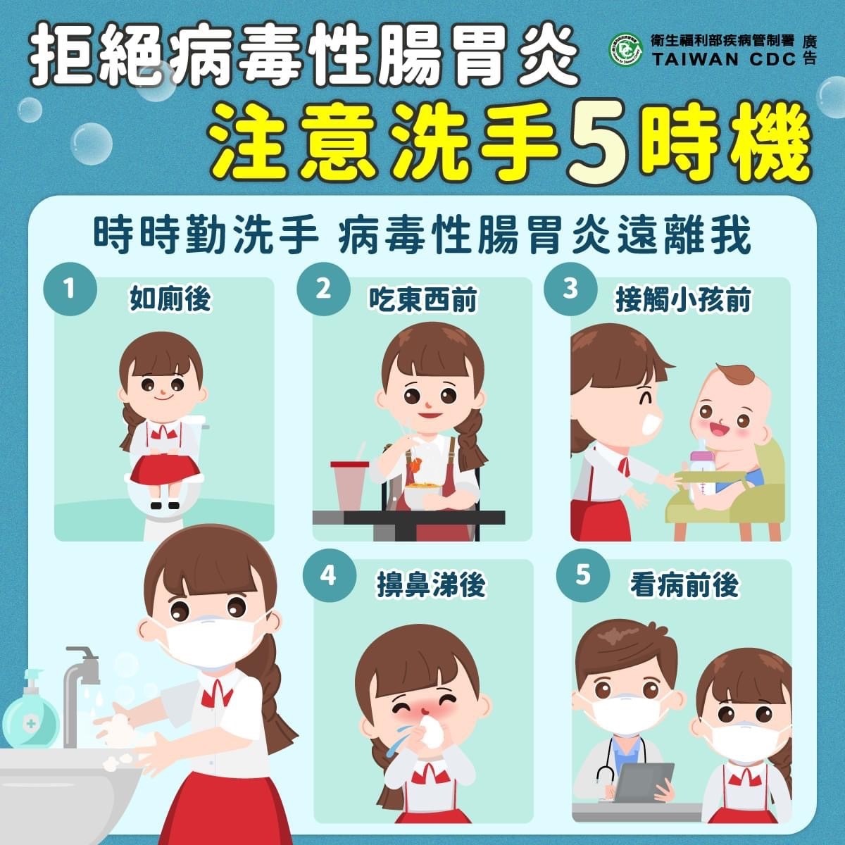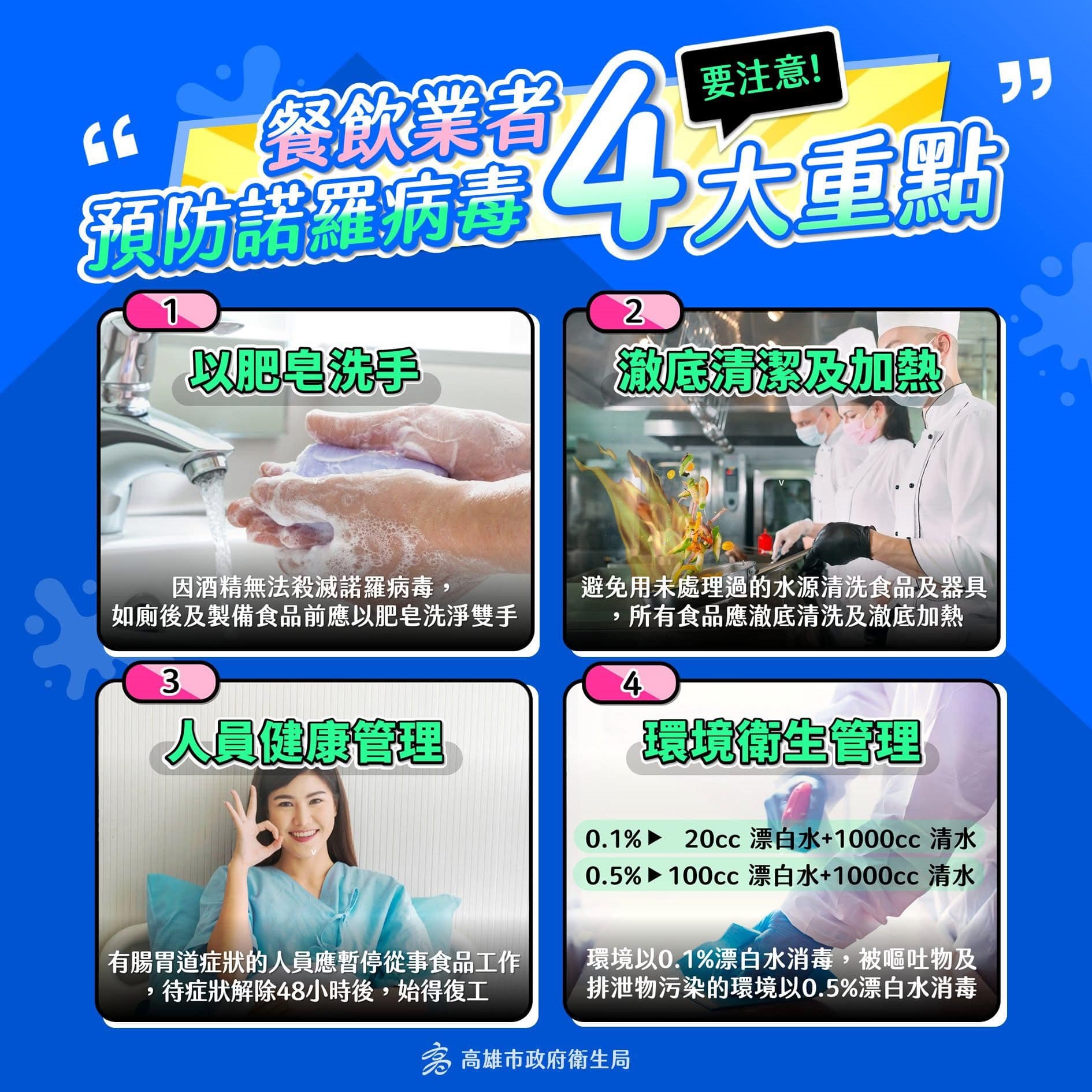 🔹 身體不適請休息:如有腹瀉、嘔吐等症狀,避免上課或上班,並儘速就醫