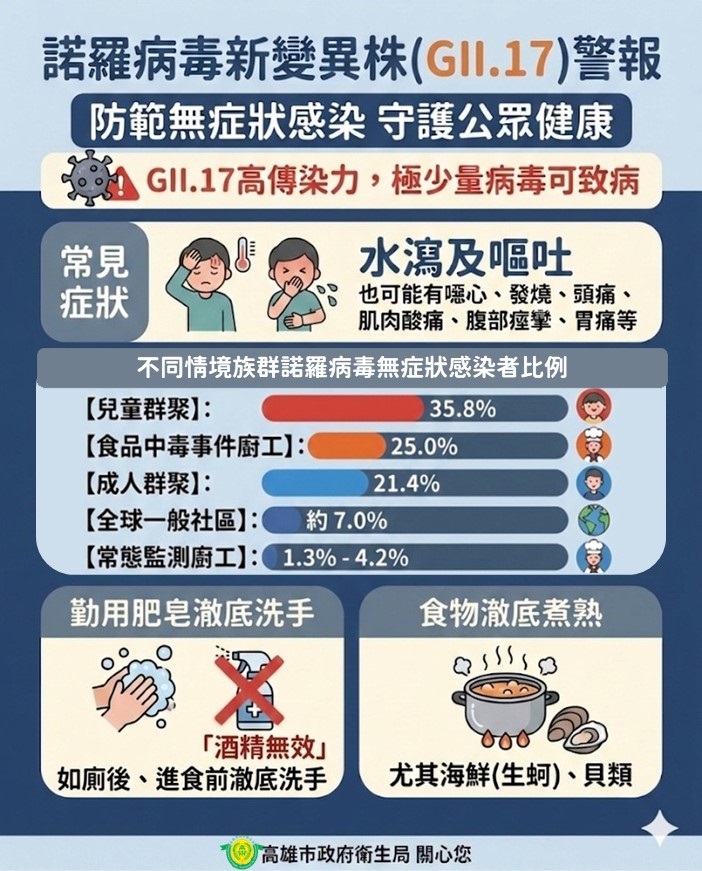 近期病毒性腸胃炎(諾羅病毒)持續流行,及諾羅病毒變異株(GII.17)於社區活動活躍,該變異株傳染力極強,僅需極少量病毒即可致病;另剛康復或無症狀感染者,仍會持續自體內排出病毒,一般成人最長排毒期可達28天,而幼童及免疫力低下者最長更可達數個月,即使沒有症狀,仍可能傳播病毒,請提高警覺並落實防護措施: