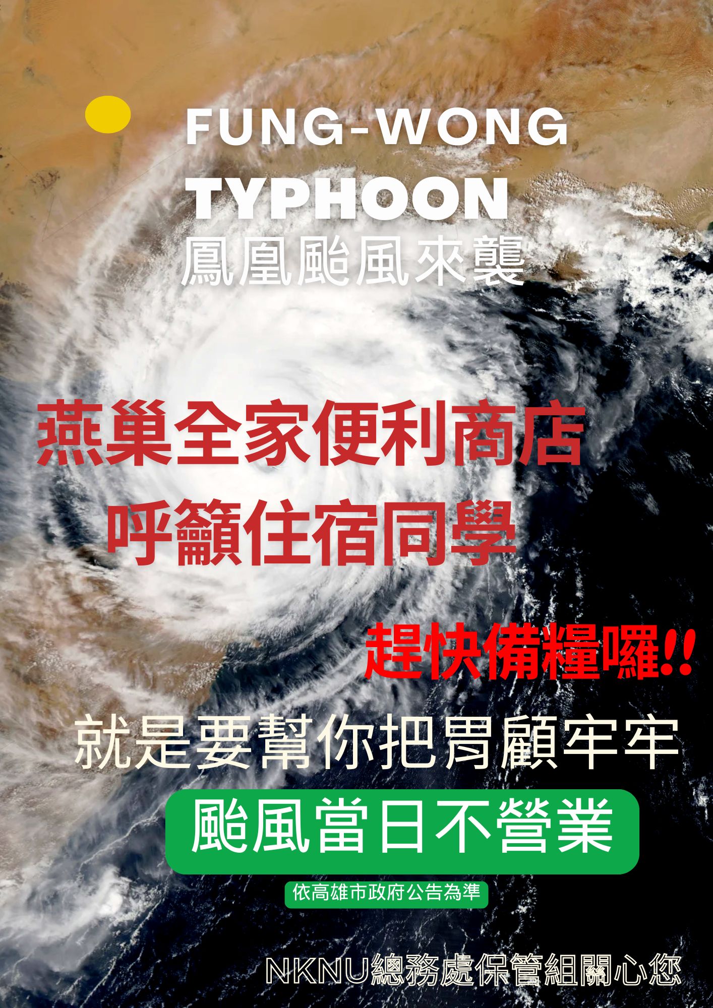 颱風期間,燕巢的NKNU「全家便利商店」將暫停營業,