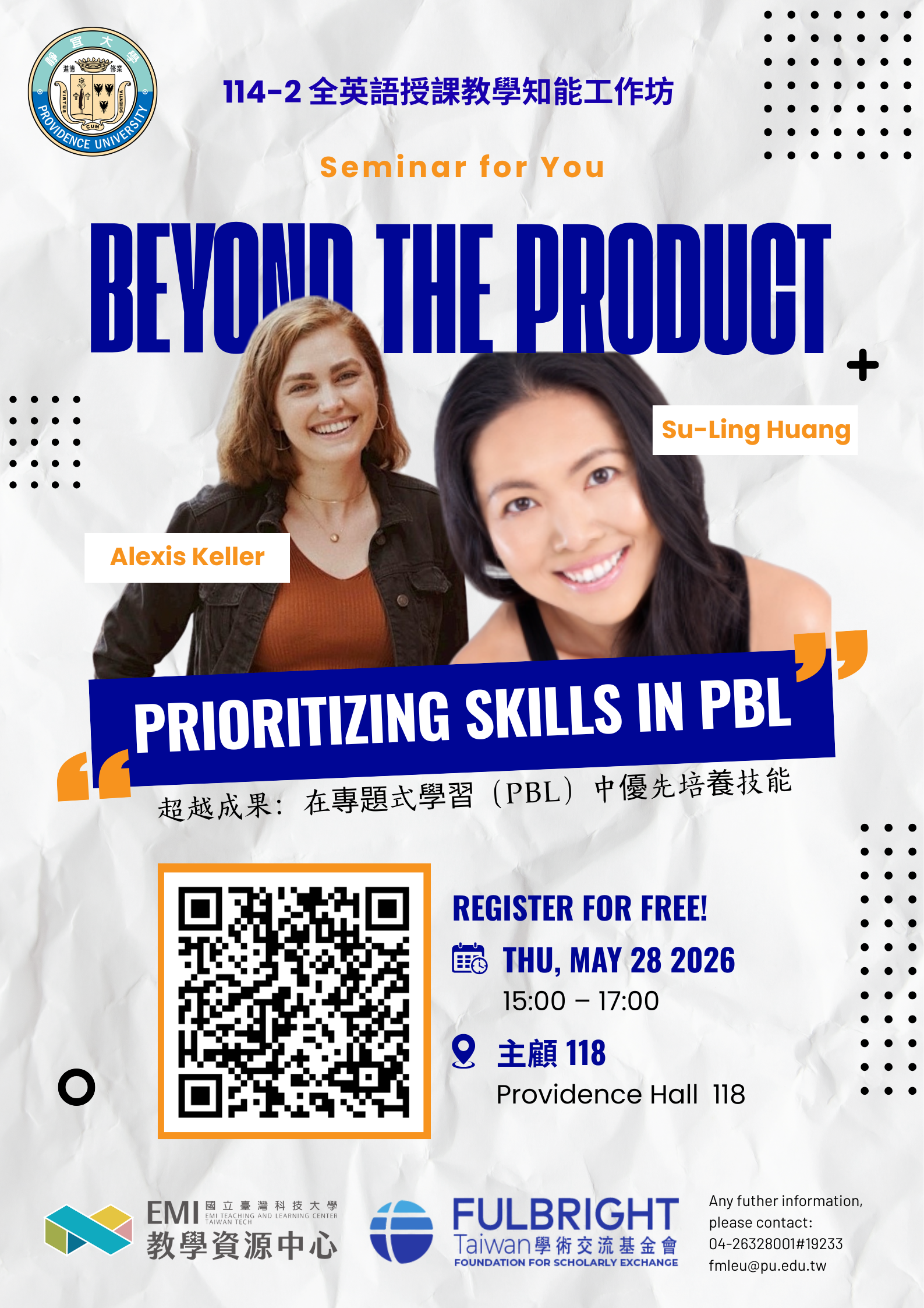 【轉知】靜宜大學與國立臺灣科技大學EMI教學資源中心合作辦理跨校聯合EMI講座,請查照。