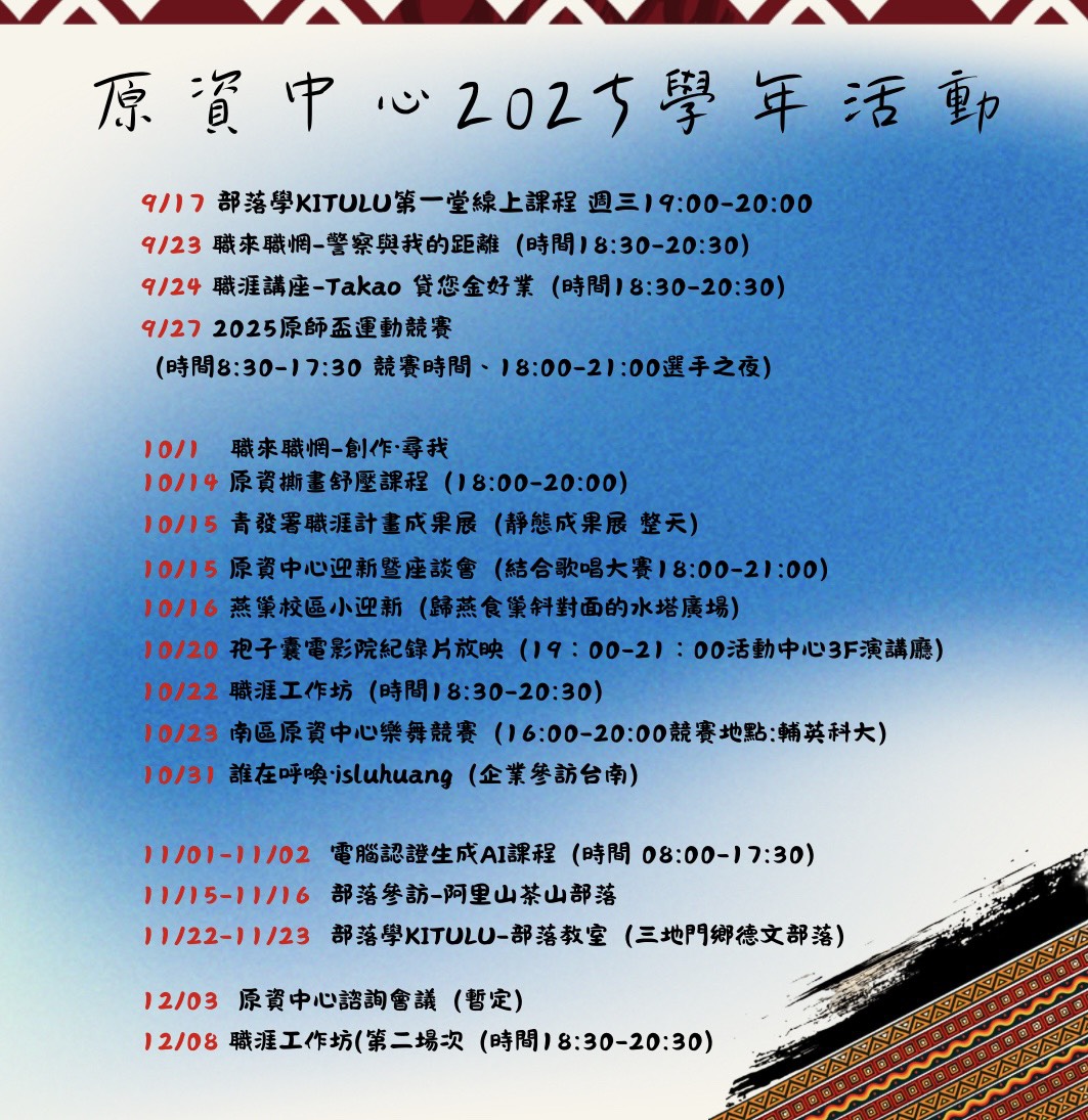 ........以上資訊如有任何疑問請洽原住民族學生資源中心