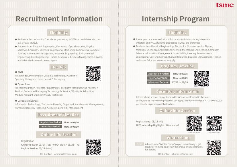 【TSMC 2026 Campus Recruitment & Summer Internship】Your Future Awaits... (and so does a chance at an iPad!)
