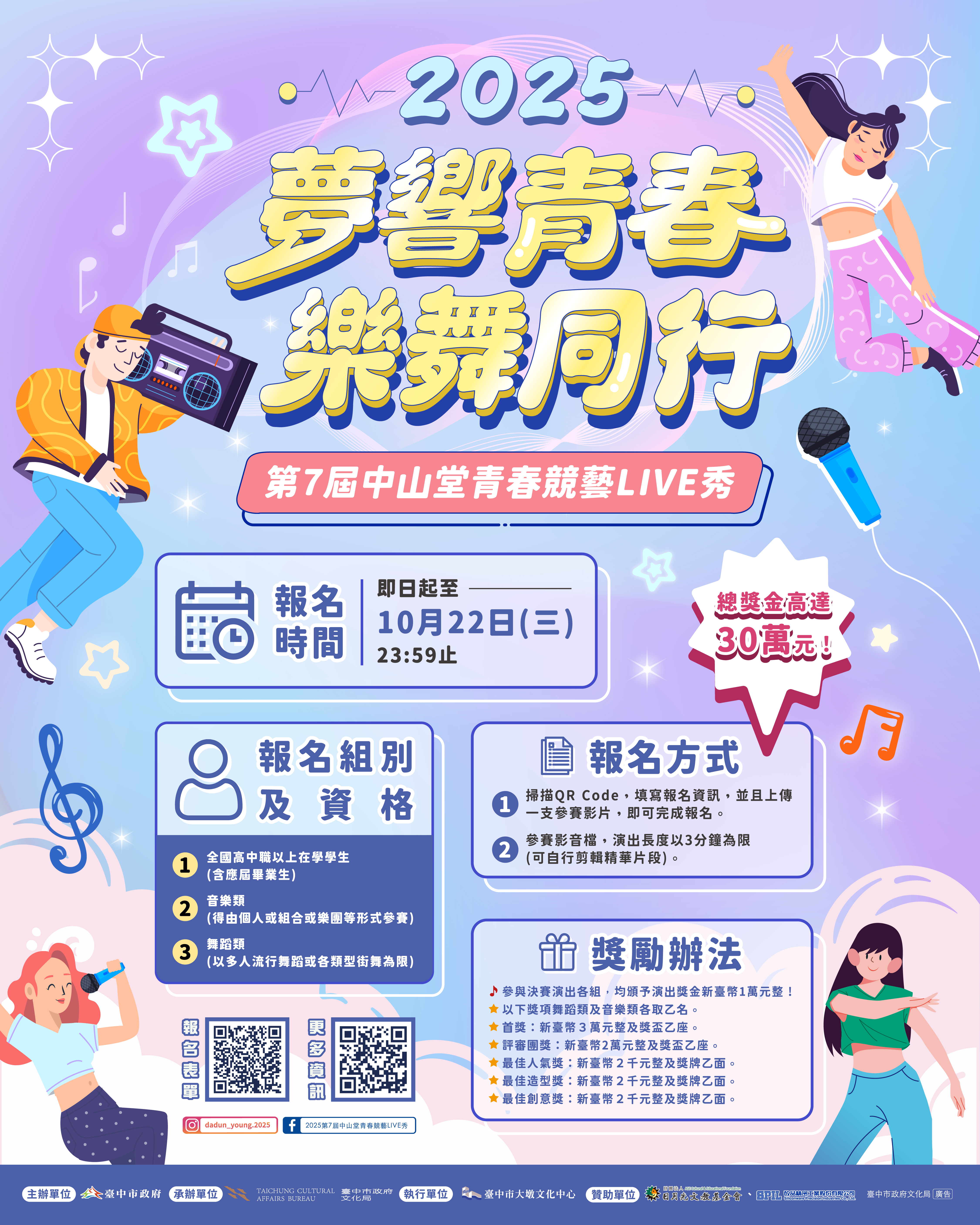 獎勵辦法:入選決賽者即可獲得1萬元演出獎勵金,並有機會競逐最高3萬元之首獎,總獎金超過30萬元。