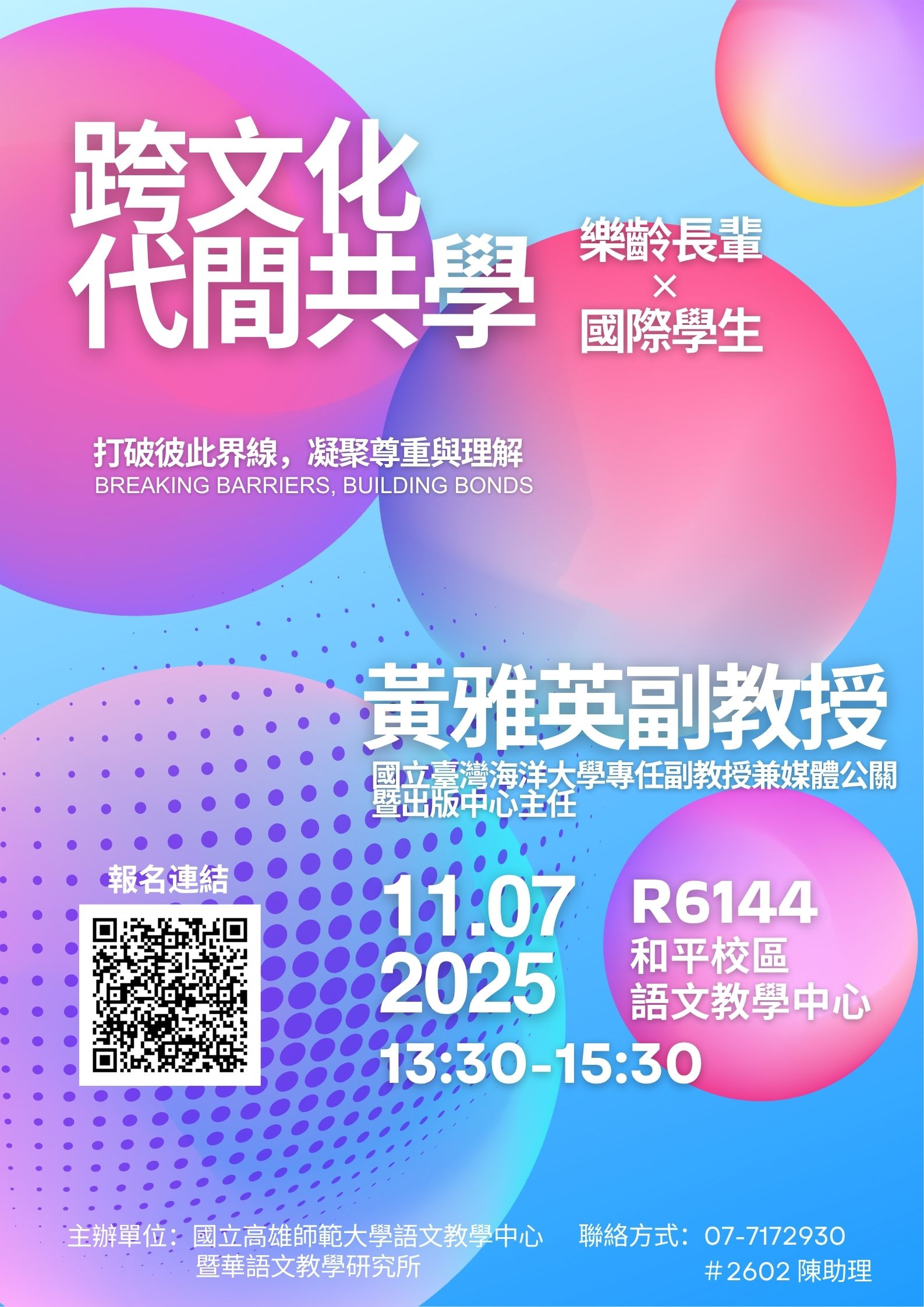 114秋季系列專題講座 - 跨文化代間共學—樂齡長輩X國際學生