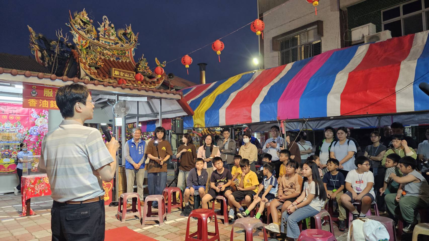 今年3月6日至7日於屏東市林仔內三山古廟舉辦「攑老爺紙炮篙文化祭」中,特別邀請大同國小師生參與並頒發感謝狀(圖片1),肯定學校深耕地方文化教育的努力。活動同時也帶領高師大客語第二專長學員走入田野(圖片2),參與紙炮篙祭儀與巡庄,透過實地觀察與體驗,深化對客家民俗與地方文化的理解,並思考轉化為教學教材,落實文化傳承與教育實踐。