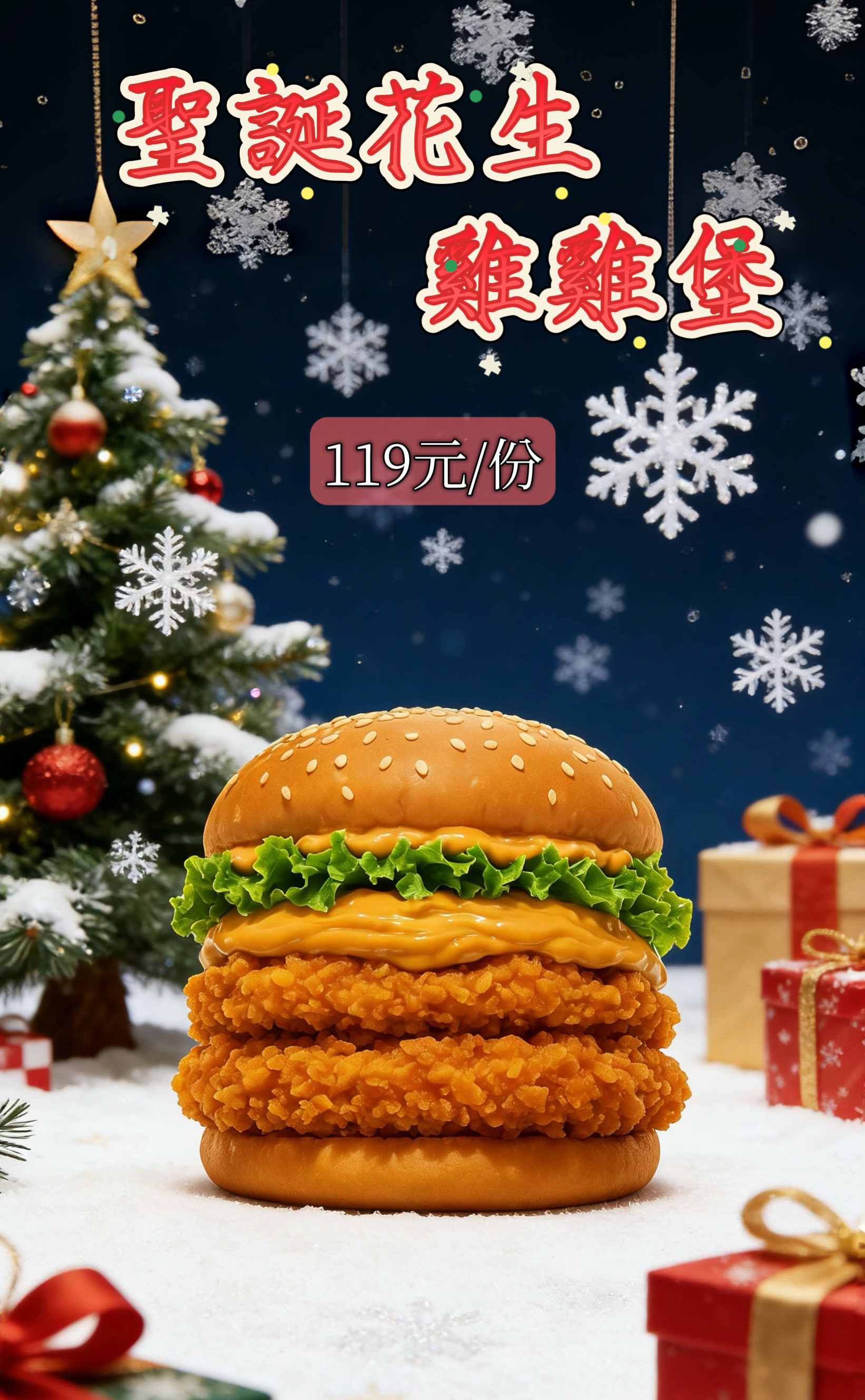 聖誕花生雞雞堡