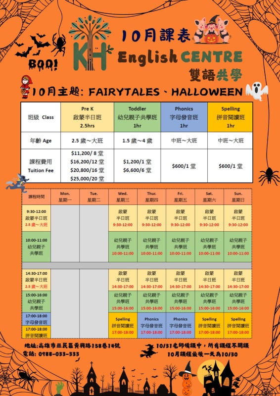 KH English Center 📅 10 月課程主題資訊