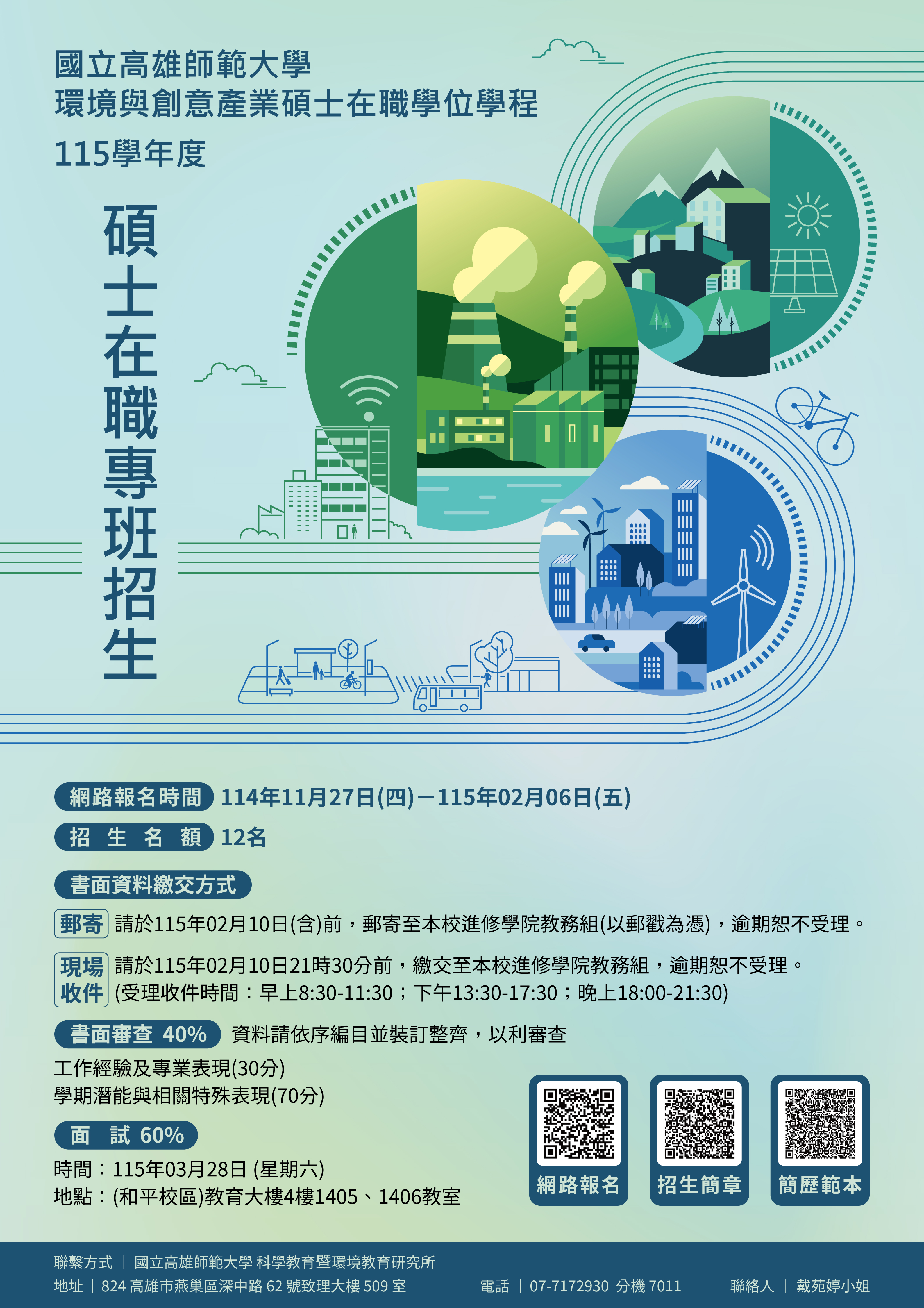 本所115 學年度「環境與創意產業碩士在職學位學程」正在招生中!