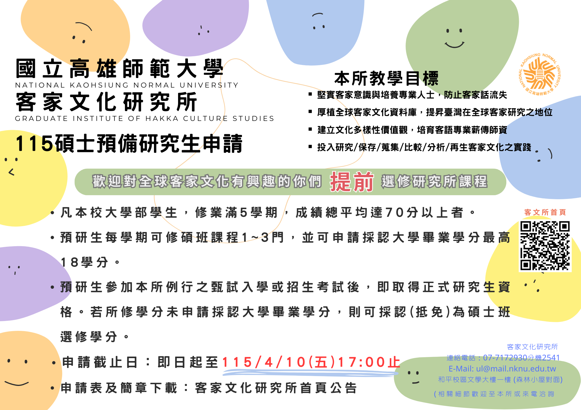 115學年度客文所碩士班預備研究生開放申請