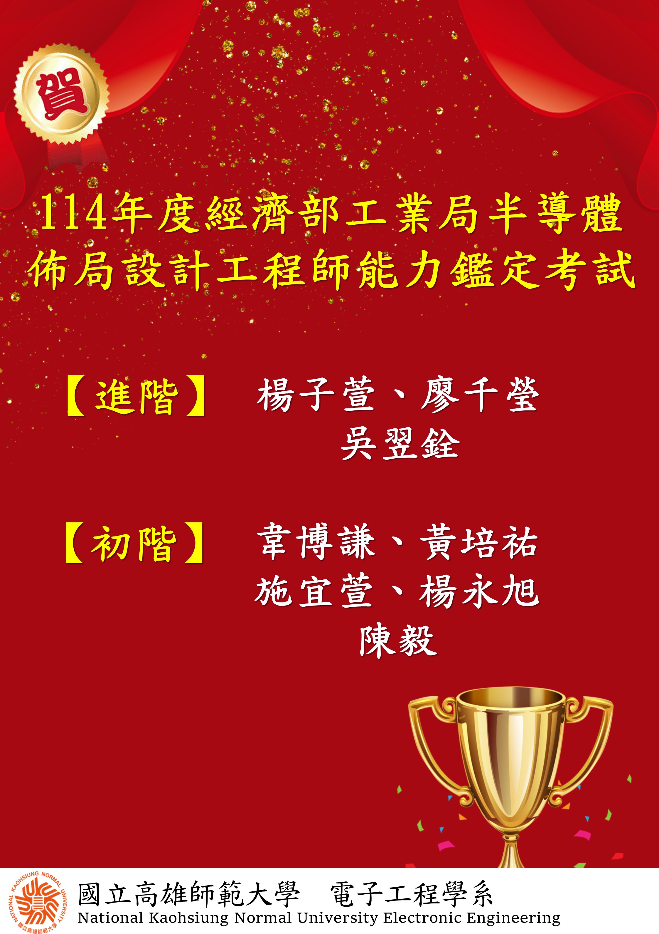 恭賀電子系! 114年度經濟部工業局半導體佈局設計工程師能力鑑定考試通過
