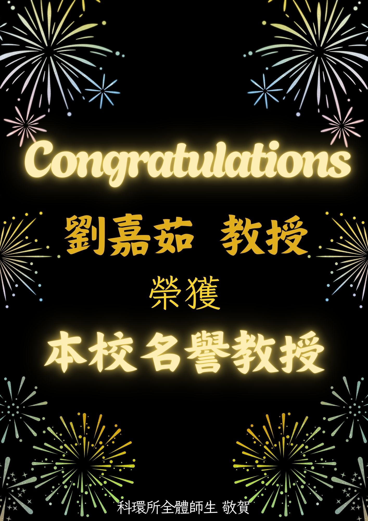 恭賀!!本所劉嘉茹老師 榮獲本校名譽教授