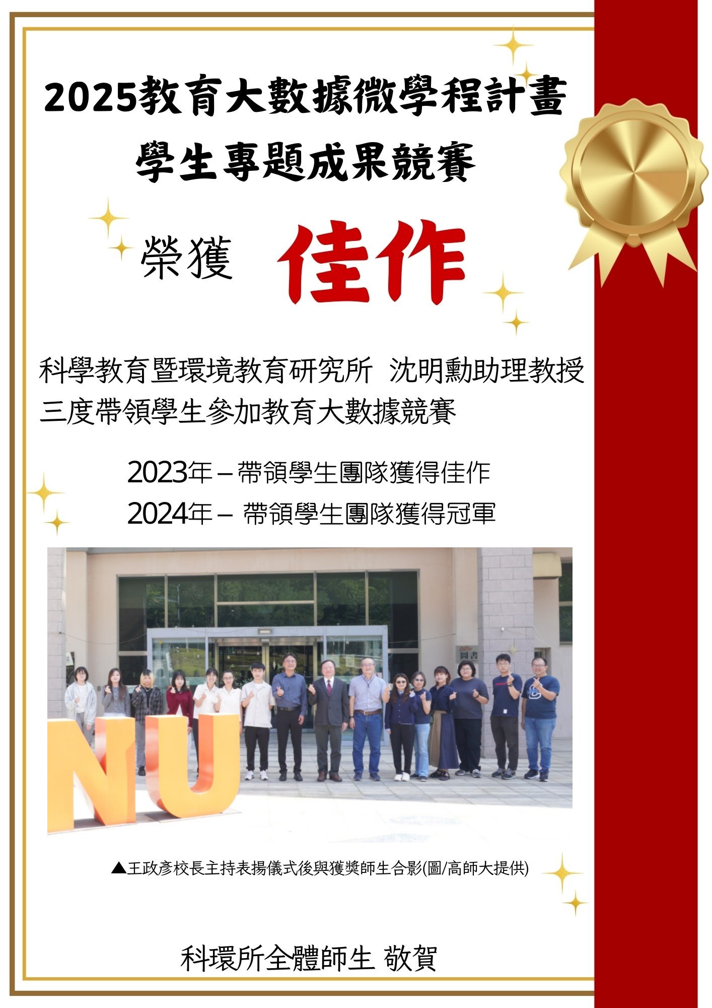 恭賀!!本所沈明勳老師帶領學生參加「2025教育大數據微學程計畫 學生專題成果競賽」榮獲佳作