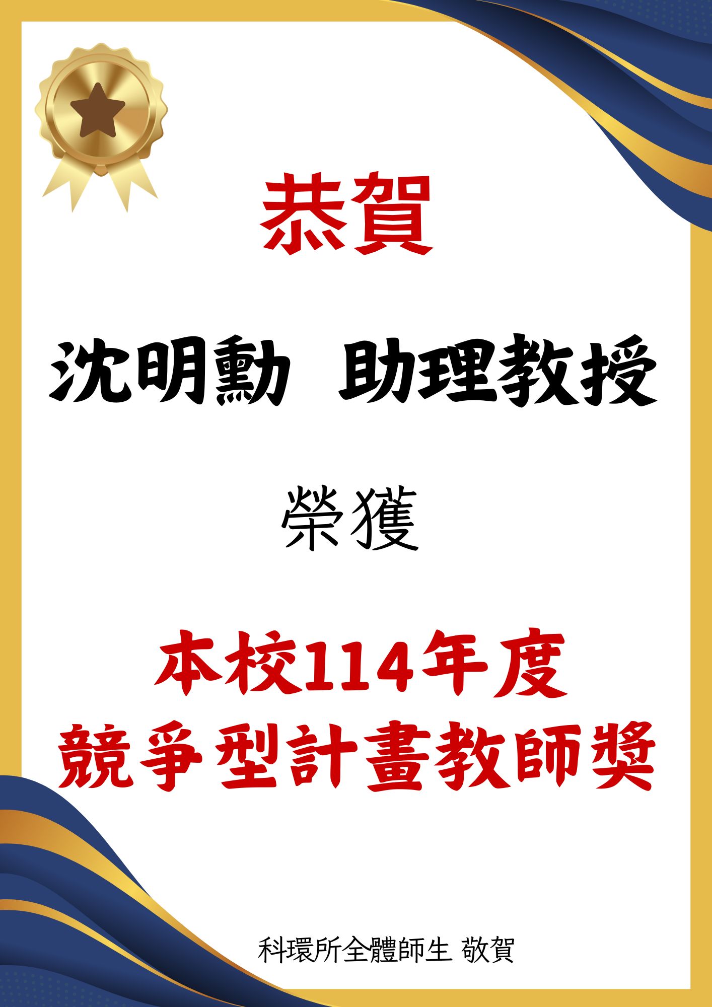 恭賀!!本所沈明勳老師 榮獲本校114年度競爭型計畫教師獎
