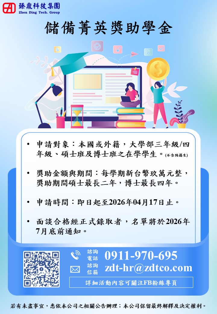 【臻鼎科技集團】2026儲備菁英獎助學金申請資訊