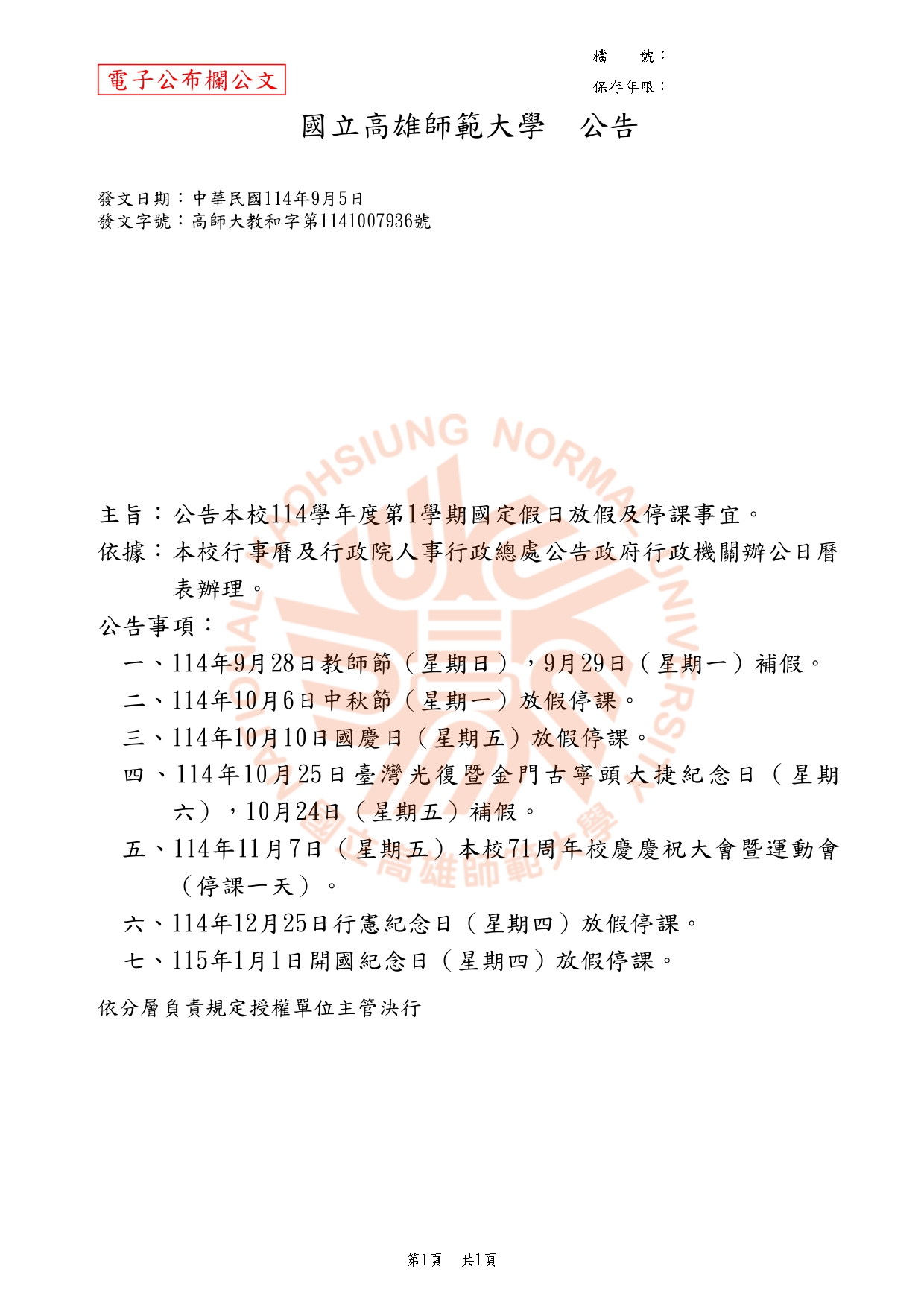 公告本校114學年度第1學期國定假日放假及停課事宜.jpg (461.294921875 Kb)